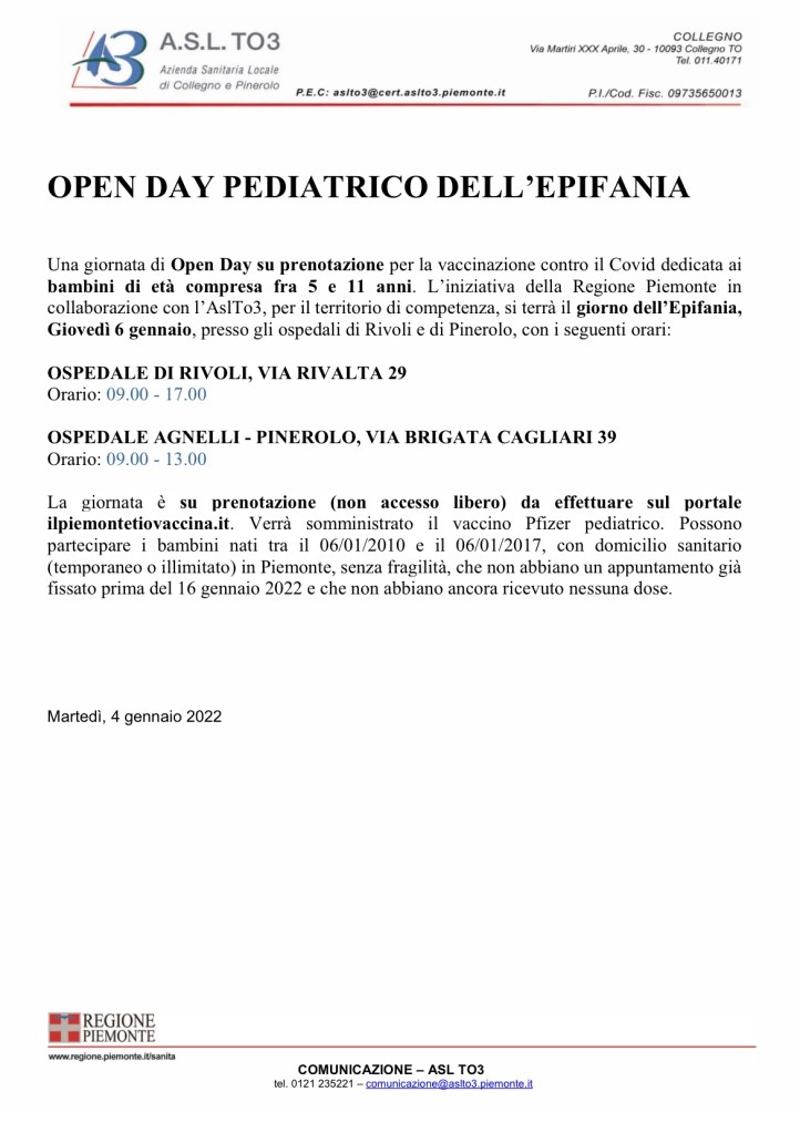 Per quanto riguarda l’ambulatorio di Reano il 1 giugno 2022 rimarrà regolarmente aperto dalle 10 alle 11.