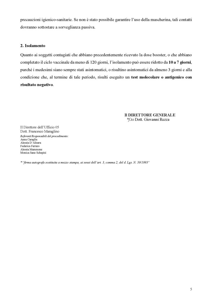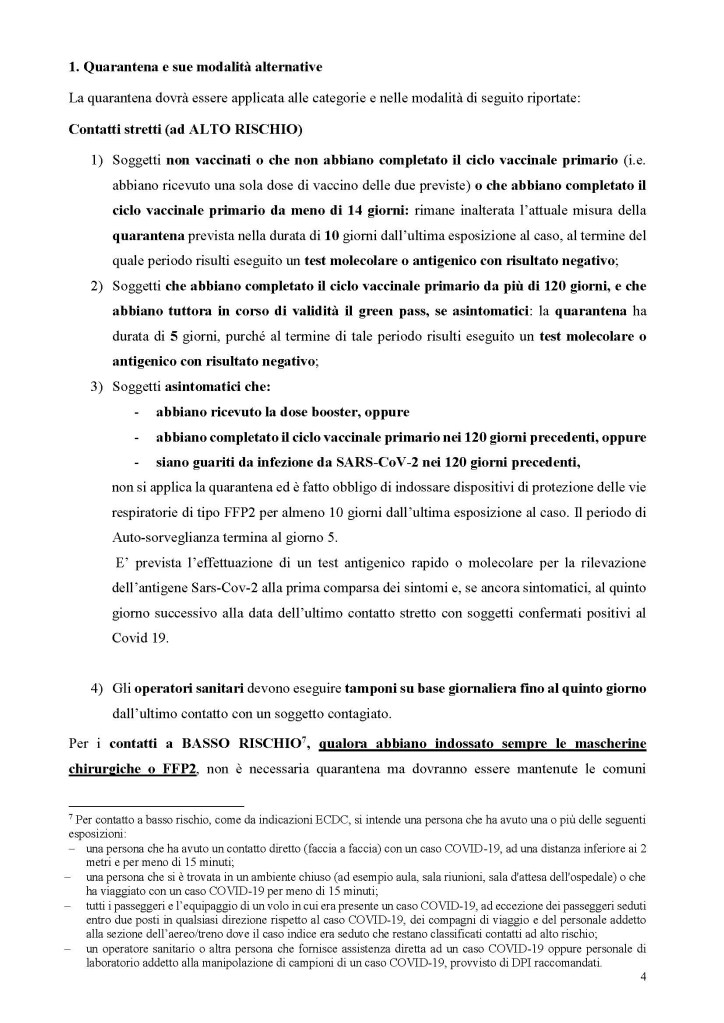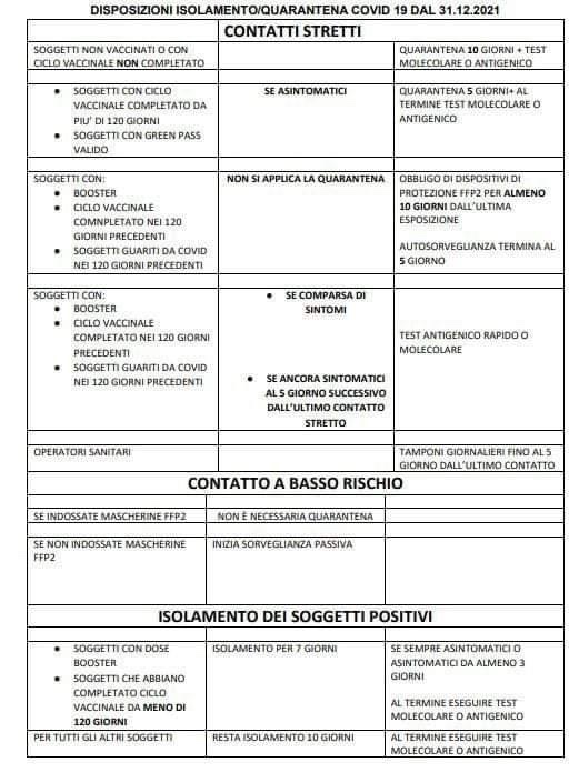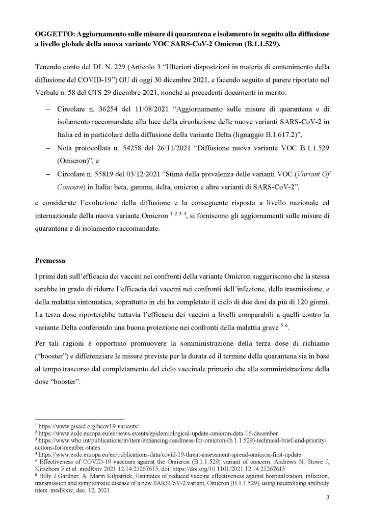 Aggiornamento sulle misure di quarantena e isolamento in seguito alla diffusione a livello globale della nuova variante VOC SARS-CoV-2 Omicron (B.1.1.529)
